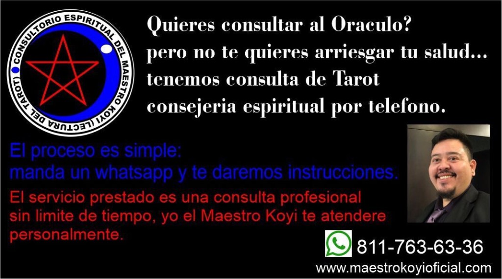 Quieres consultar, pero tiene miedo por tu salud, no te preocupes, tenemos consulta del Tarot y consejería espiritual por telefono o video llamada, separa tu cita al 811-763-63-36.