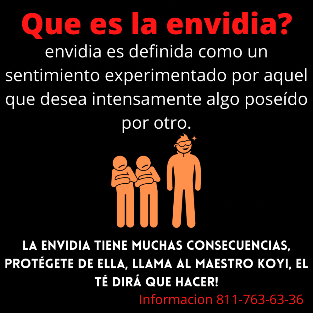 Este sentimiento a nivel espiritual crea muchos problemas, ya que el ser humano tiene el poder de proyectar energía, cuando se enfoca en algo produce un efecto muy similar a un hechizo, ya que a la persona envidiada le empieza a ir mal, si es un negocio, empieza a batallar en sus ventas, si son aparatos u objetos se descompones o quiebran, al grado que las personas afectadas llegan a sentirse “saladas”, incluso ha llegado a atraer enfermedad, desánimo, pérdida de deseos de vivir, desesperación, ansiedad, por eso es muy importante limpiarse contra la envidia, protegerse de ella por medio de amuletos, protecciones, perfumes, riegos, cuando sientas que eres víctima de la envidia, llama al Maestro Koyi, que el té indicará que hacer.