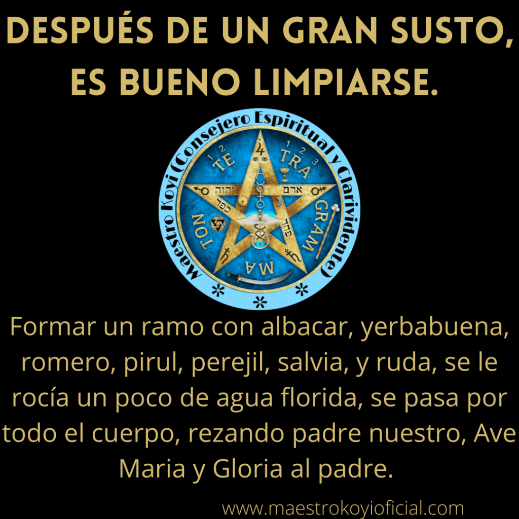 Cuando uno recibe una experiencia tan estresante como un susto, ya se por alguna cosa qué pasó, nuestro espíritu tiende a separarse del cuerpo, por eso se produce un cambio notable en la persona, se ve triste, apagada, no rinde en sus actividades, no rinde, y es por eso que se tiene que limpiar con las 7 hierbas, cuya combinación fue elegida por los brujos del pasado, se cree que cuando uno se espanta el espíritu se defiende, moviendo el punto de encaje, que es lo que nos permite conectarnos con el mundo, cuando se mueve el punto de encaje la persona pierde mucha energía espiritual, el Aura que es nuestra protección espiritual se abre, por eso puede enfermarse después de un susto, para curar a la persona se hace un ramo de 7 hierbas, se usa agua florida o flor de azar, es la misma, está loción y la de lavanda son las más usadas por los brujos, con está limpia y la dispersión al final, el Aura queda restaurada, es altamente efectiva.
