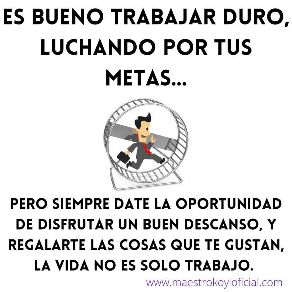 Es bueno tener rutinas y roles, para disciplinar la vida, pero todo ese esfuerzo debe dirigirse a vivir feliz, aquí estamos de pasada y ni siquiera somos dueños de saber cuándo pasará, por eso vive a plenitud, consiente de todo, que no se te escape nada de tu vida, trabaja duro, si, per date tus gustos, disfruta tus descansos, disfruta a tu familia, date regalos, no te prives de viajar, conocer, disfrutar todo, no vallamos a caer en la carrera de la rata, que corre y corre en una rueda y da vueltas eternamente hasta que muere, sin llegar a ningún lado, vive tu vida, es valiosa, no esperemos a otra vida para hacer lo que te gusta, hazlo aquí y ahora, karma significa rueda, no vallamos a estar girando en un karma, trasformeslo en darma, que tu vida sean bendiciones!!!